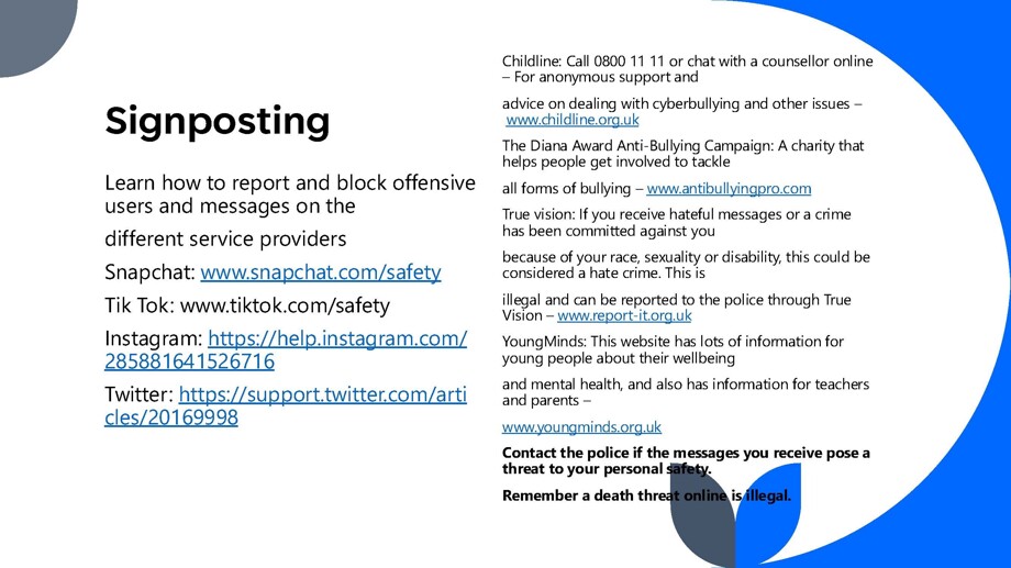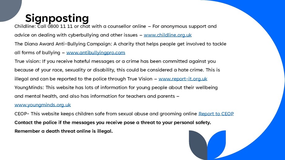 Check out our school policies, posters and the link below which will give you guidance and relevant information regarding the safeguarding of your young person.